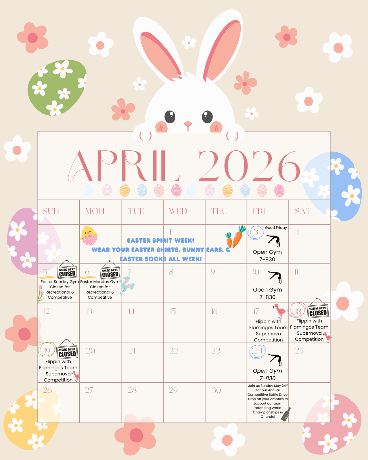 🐥 Reminder we will be closed on Easter Sunday & Easter Monday for Recreational and Competitive Athletes! Make-up class will be offered for Monday recreational athletes!