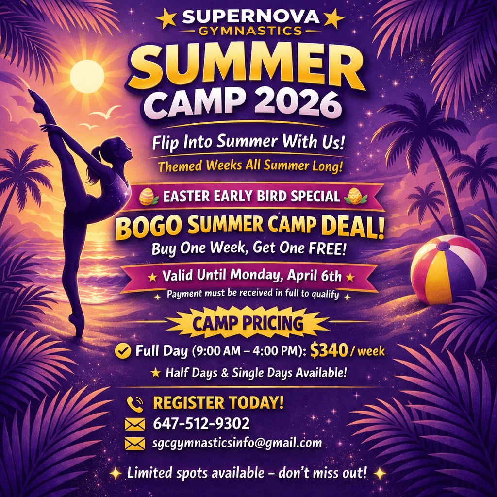 Flip into summer with us at Supernova Gymnastics! 🤸♂️💜